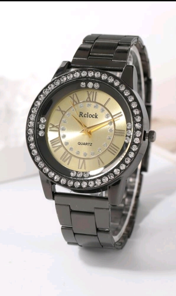 ساعت کوارتز زنانه نگین دار مشکی صفحه طلایی۸۳۰٬۰۰۰ تومان