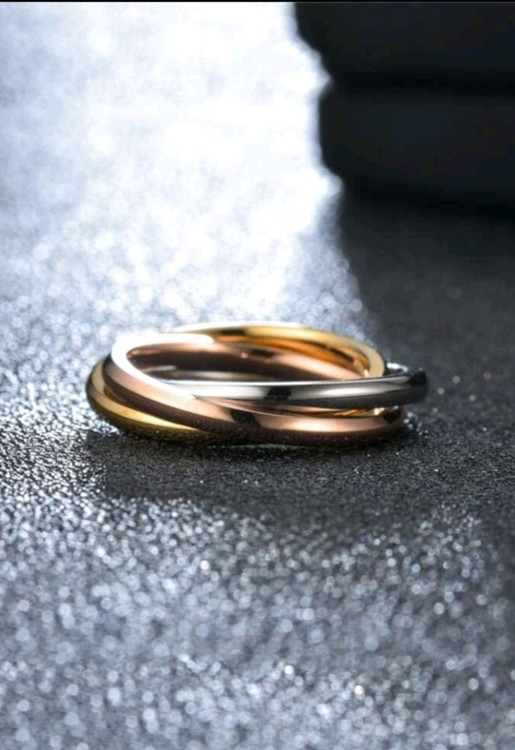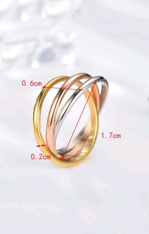 حلقه زنانه پیچیده سه رنگ: 6 عدد در دو سایز 7 و 8