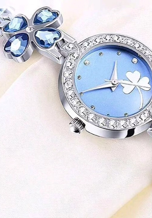 ساعت کوارتز لوکس با دستبند گل شبدر.